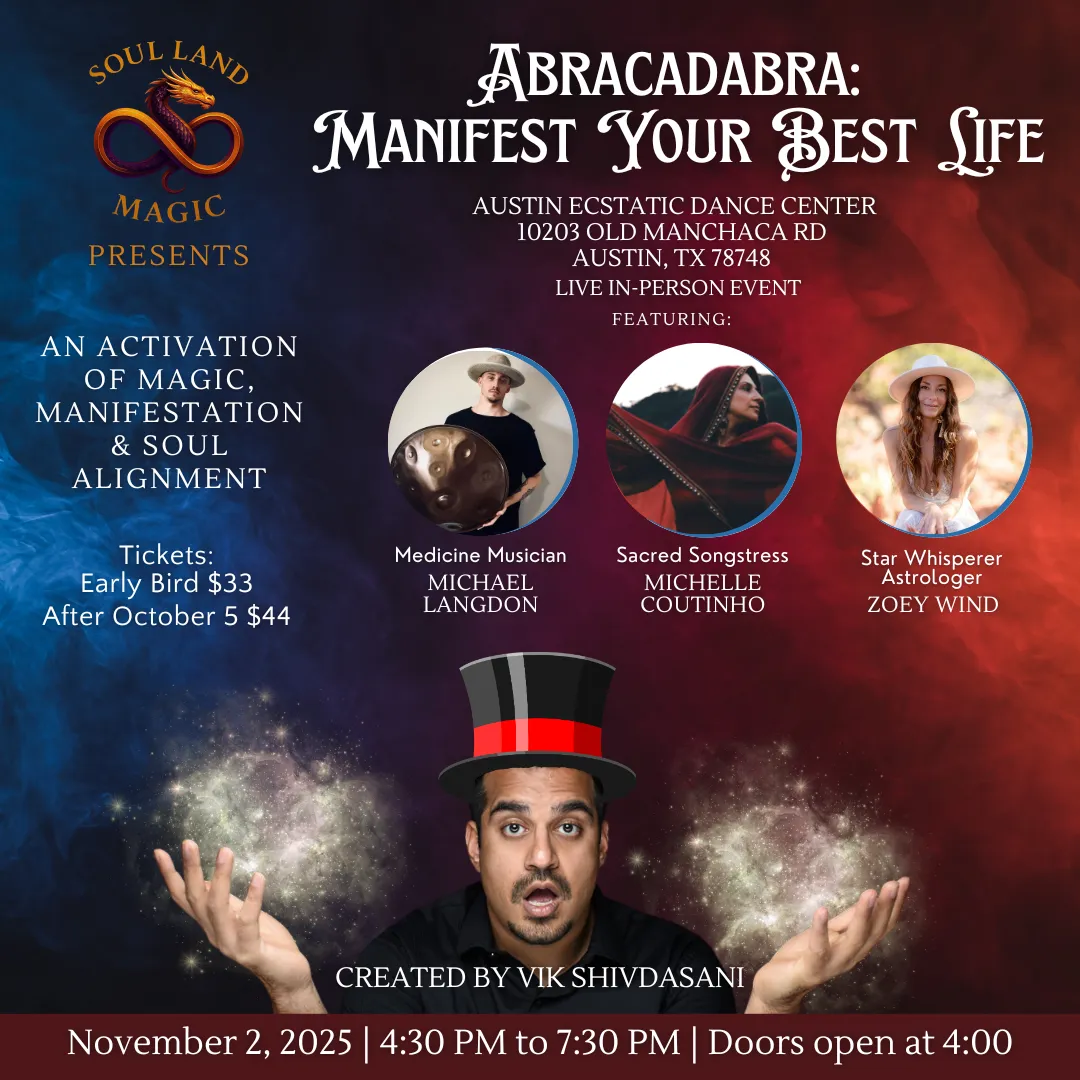 Soul Land Magic is a transformational brand created by Vik Shivdasani that takes an amusement park approach to spirituality. We design transformational experiences — or “rides” — that YOU get to go on to align with your highest and best self.